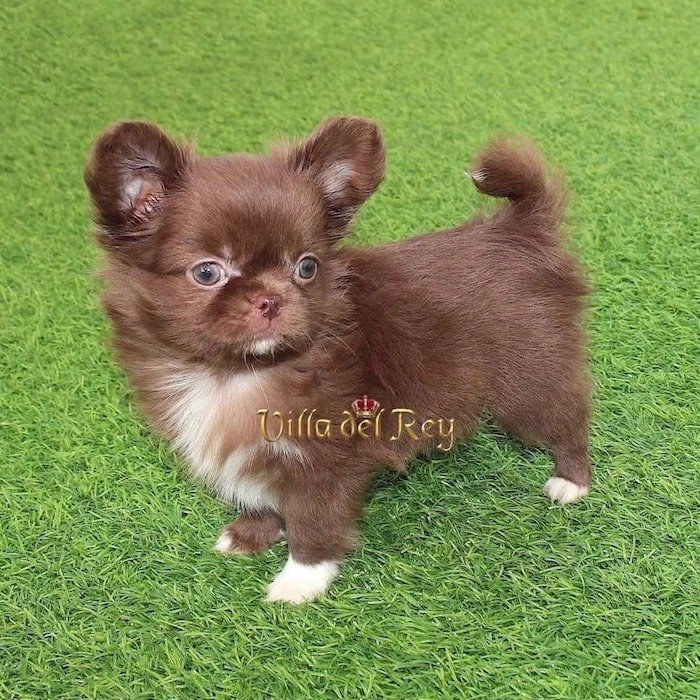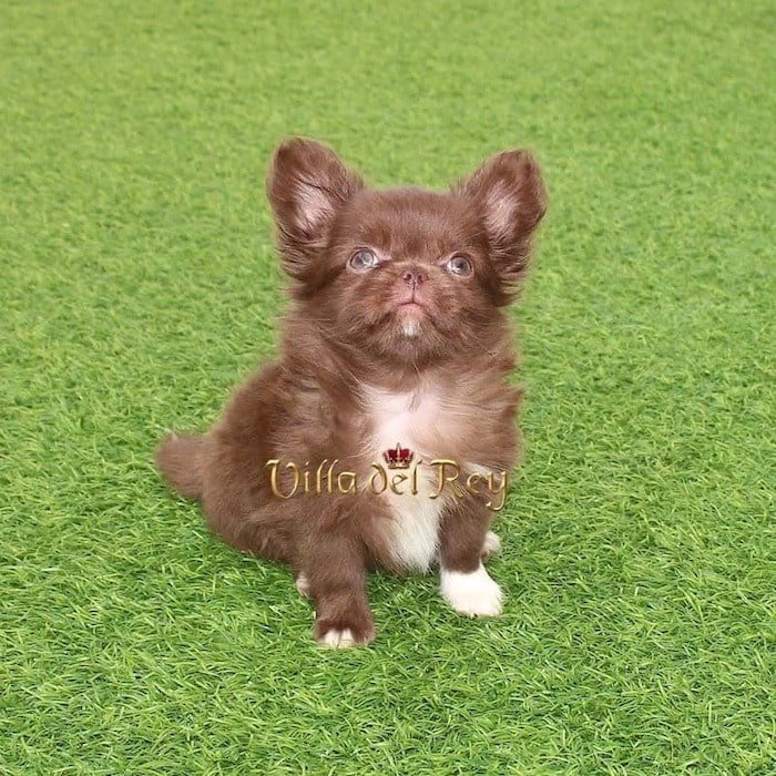 This exceptional little girl is a stunning long-coat chocolate female Chihuahua who truly commands attention. Magia surprised us from the moment she was born, and as she developed, she continued to impress us more and more with each passing day.